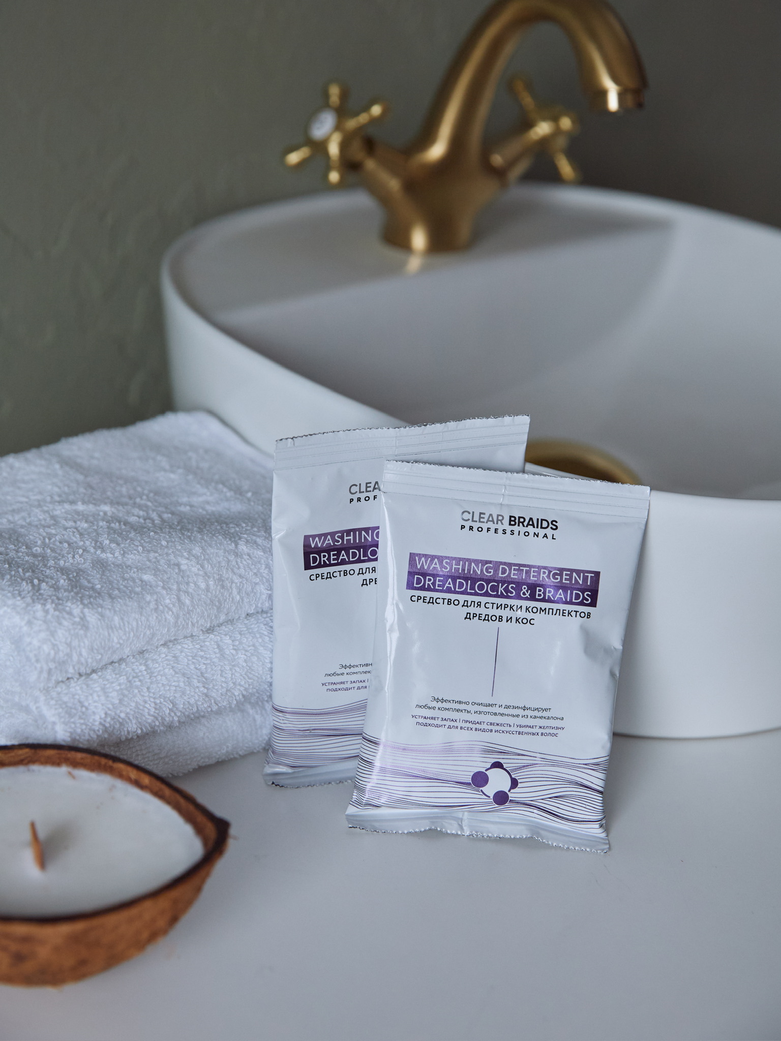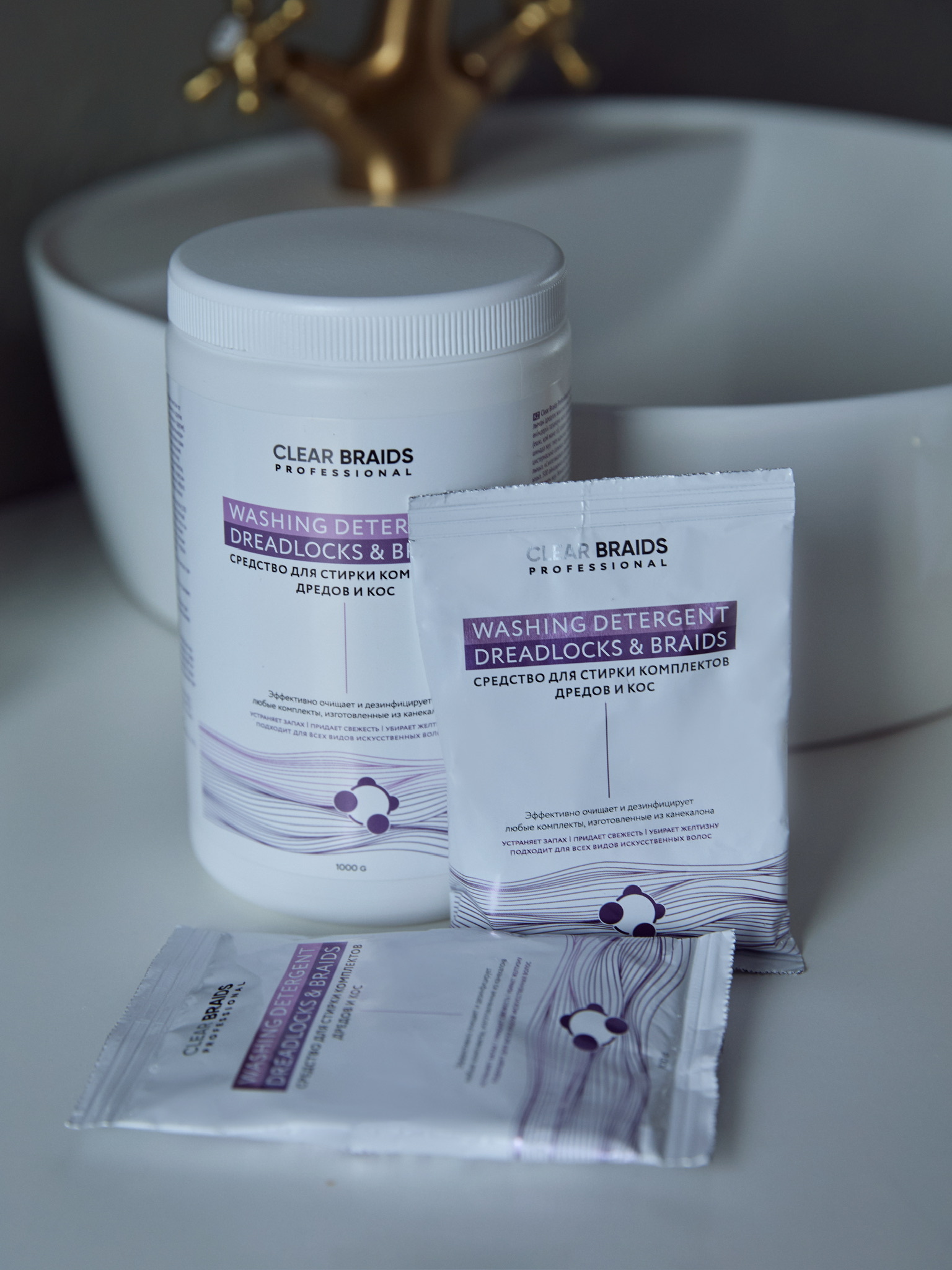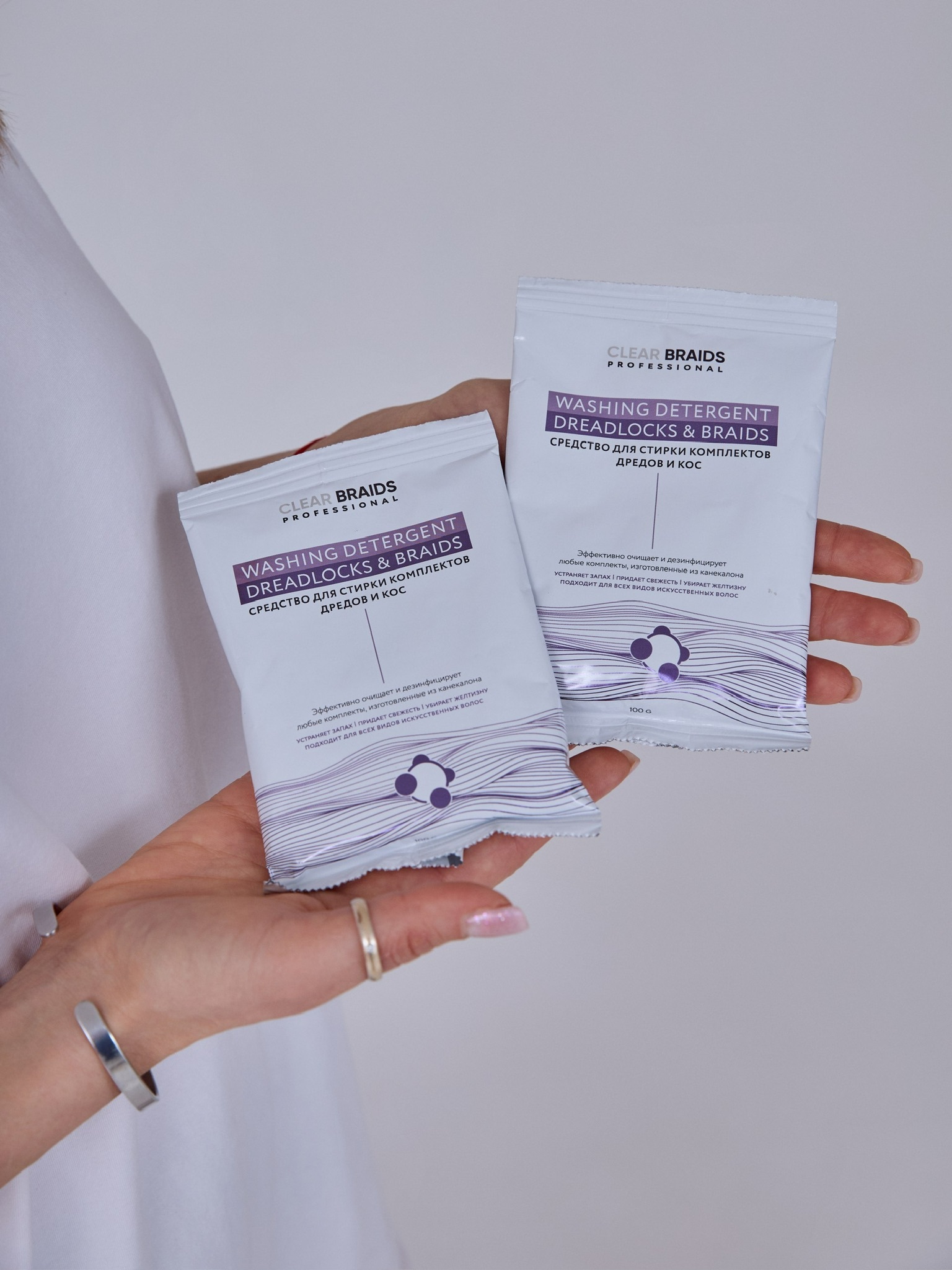 Средство для стирки Clear Braids Professional предназначено для очистки от загрязнений и дезинфекции комплектов дредов любой фактуры, косичек и других заготовок из канекалона. Комбинация активных компонентов позволяет эффективно удалять трудновыводимые загрязнения органического происхождения (застарелый себум, чешуйки кожи и др.), а также полностью устраняет неприятные запахи любого происхождения. Подходит для канекалона всех типов и цветов, эффективно убирает желтизну с комплектов белого цвета. Средство полностью выполаскивается из комплектов, не содержит ароматизаторы, красители, фосфаты, фосфонаты, акрилаты, агрессивные ПАВ, SLS, ЭДТА. Средство можно использовать в стиральных машинах любого типа, а также при ручной стирке.